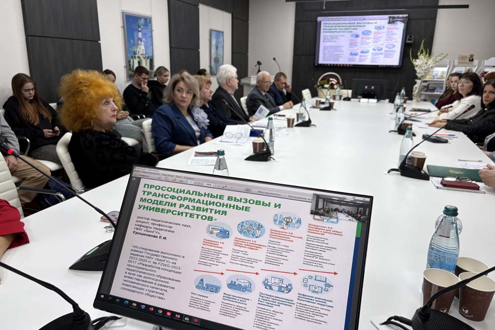 Профессор кафедры педагогики НИУ «БелГУ» Елена Ерошенкова представила доклад о просоциальных вызовах и трансформационных моделях развития университетов, выполненный по результатам исследования в рамках Государственного задания «Разработка концепции просоциального педагогического образования в вузе как долгосрочное инвестирование в развитие человеческого капитала, помогающих стратегий, солидарного общества».